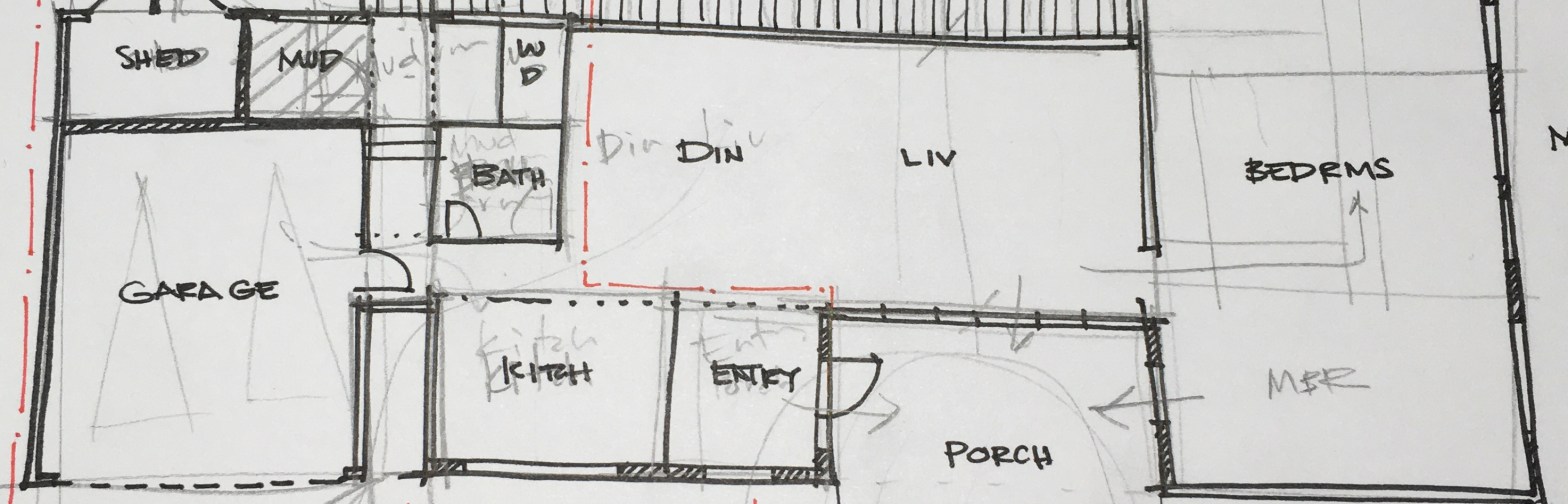 The design follows the flow of a small family, arriving home and unloading groceries. During growing season, they can go to the garden thru the mudroom, transition thru the kitchen with the harvest and wash up in the adjacent bathroom before proceeding to the main living areas of the home.