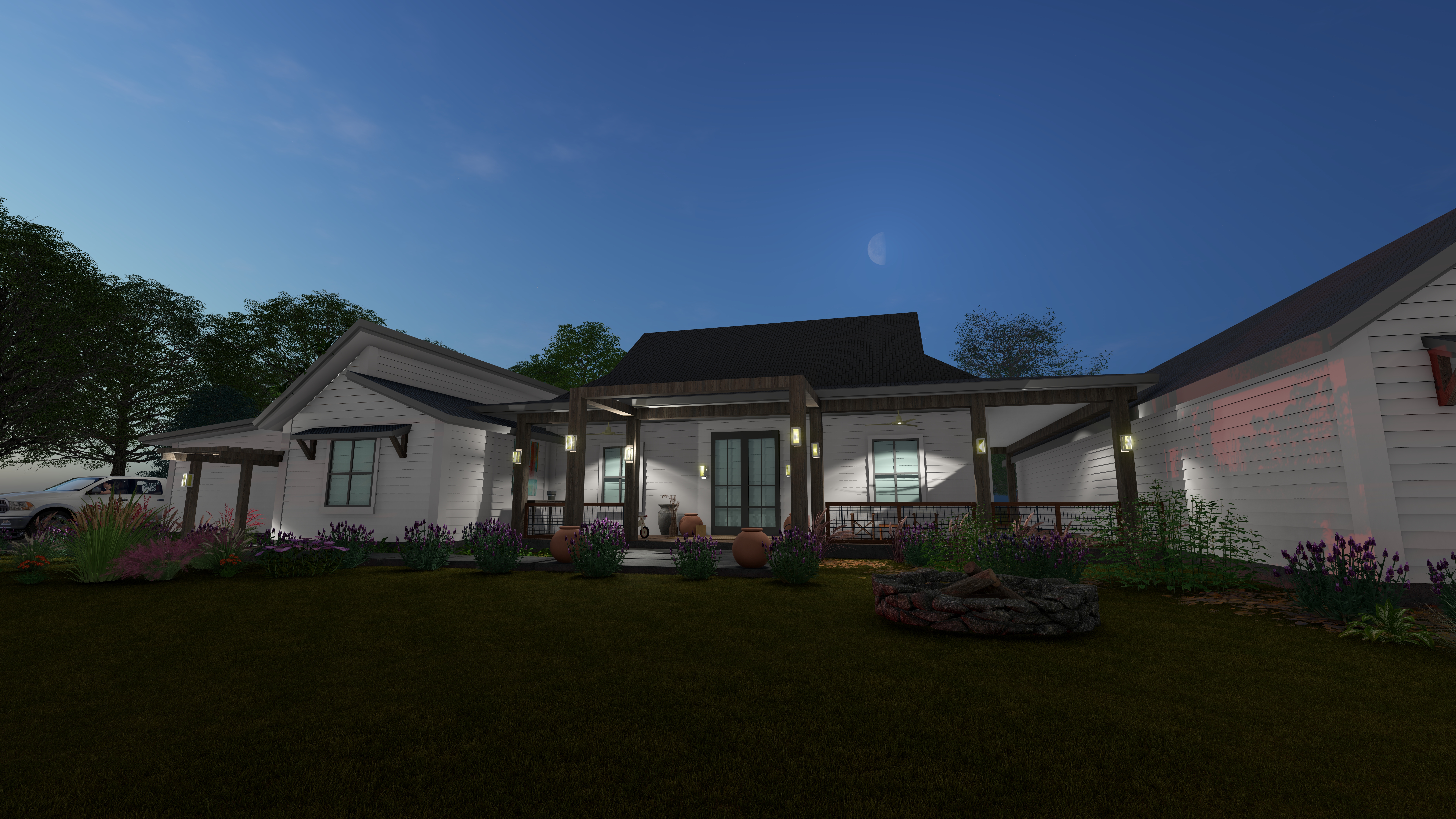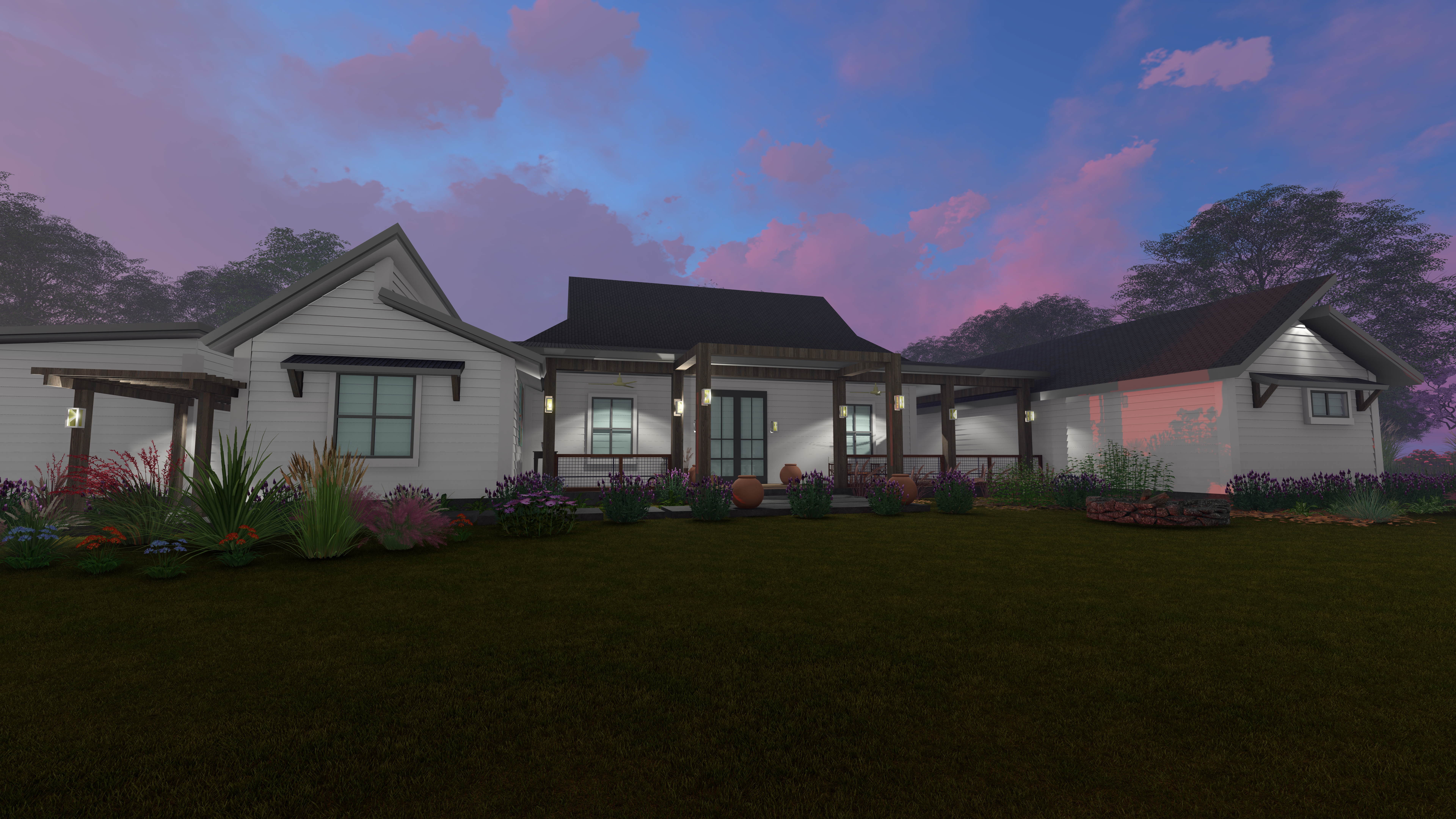 The Home is designed for a theoretical site in Terrell, Texas. It is based on a specific geolocated property and the elements of the Home was modeled to optimize that site.